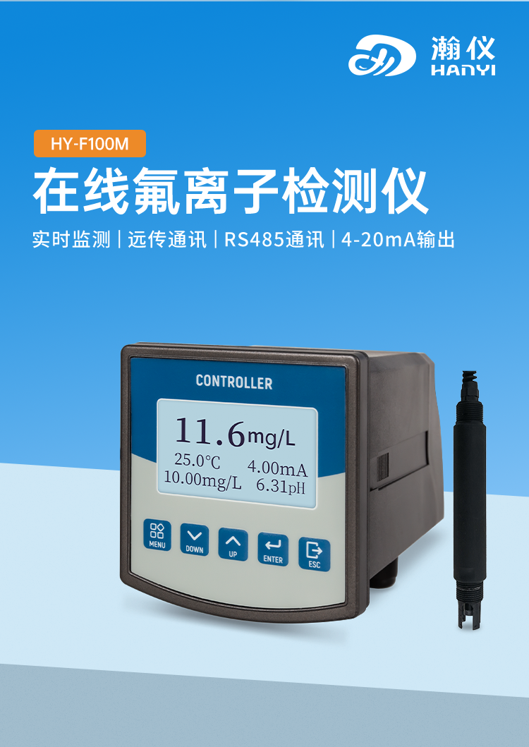 2.多参数同时显示:氟离子值、温度、输出电流等同时显示,直观易读,并有量程超限提示。