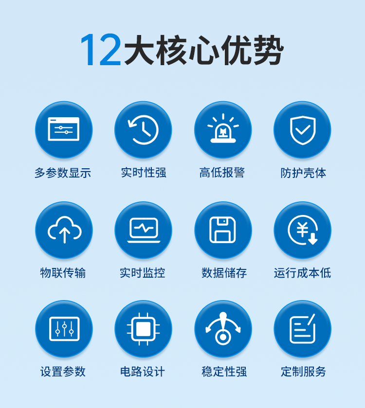 5.全数字化电极,抗干扰性能好,各电极自带温补,性能稳定可靠。