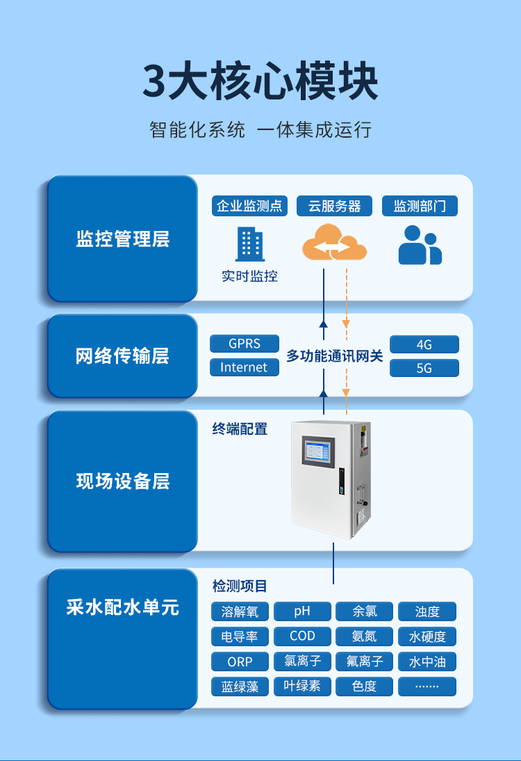多参数在线水质检测仪(参数任选:余氯、ORP、电导率、氨氮、COD、溶解氧、pH、浊度、悬浮物、臭氧、氟离子、 氯离子、硝酸根、盐度、叶绿素、蓝绿藻、水中油、污泥浓度、水硬度、二氧化氯)