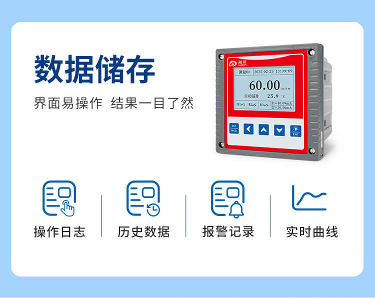 3.仪器提供2路电流输出,1路RS-485通讯接口(MODBUS协议部分兼容),3路报警继电器